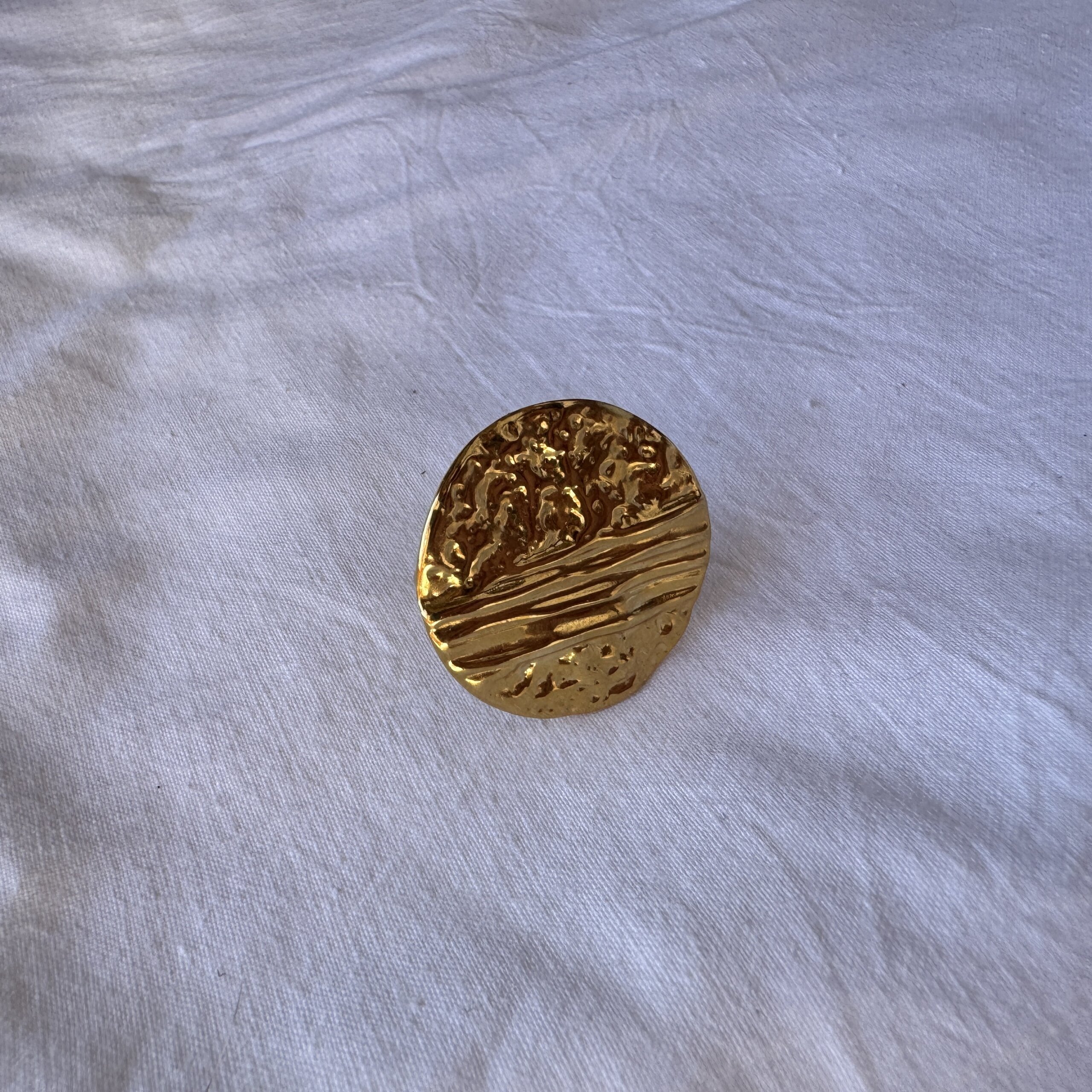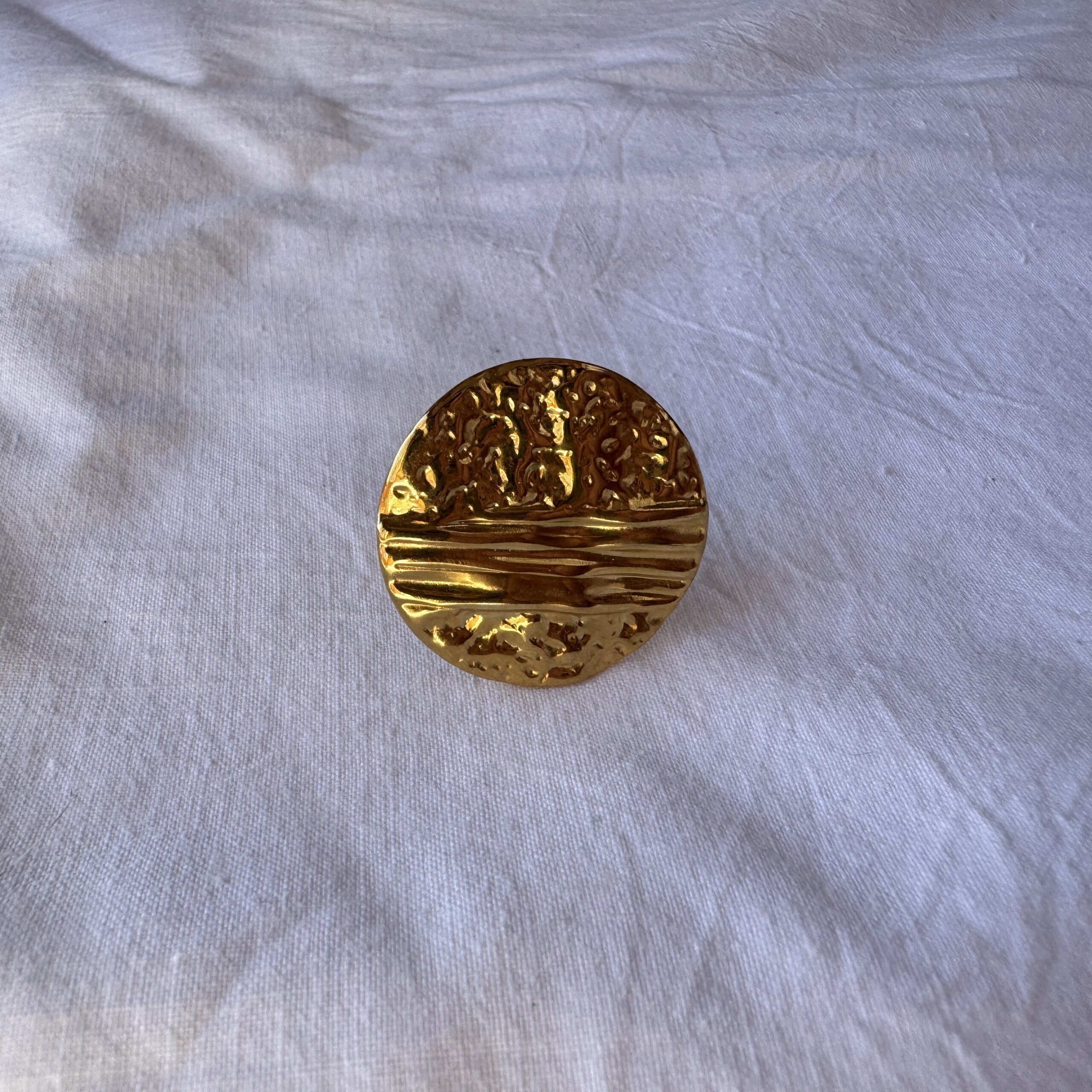 Anillo de puño abierto redondo con textura de acero inoxidable 304 para mujer,